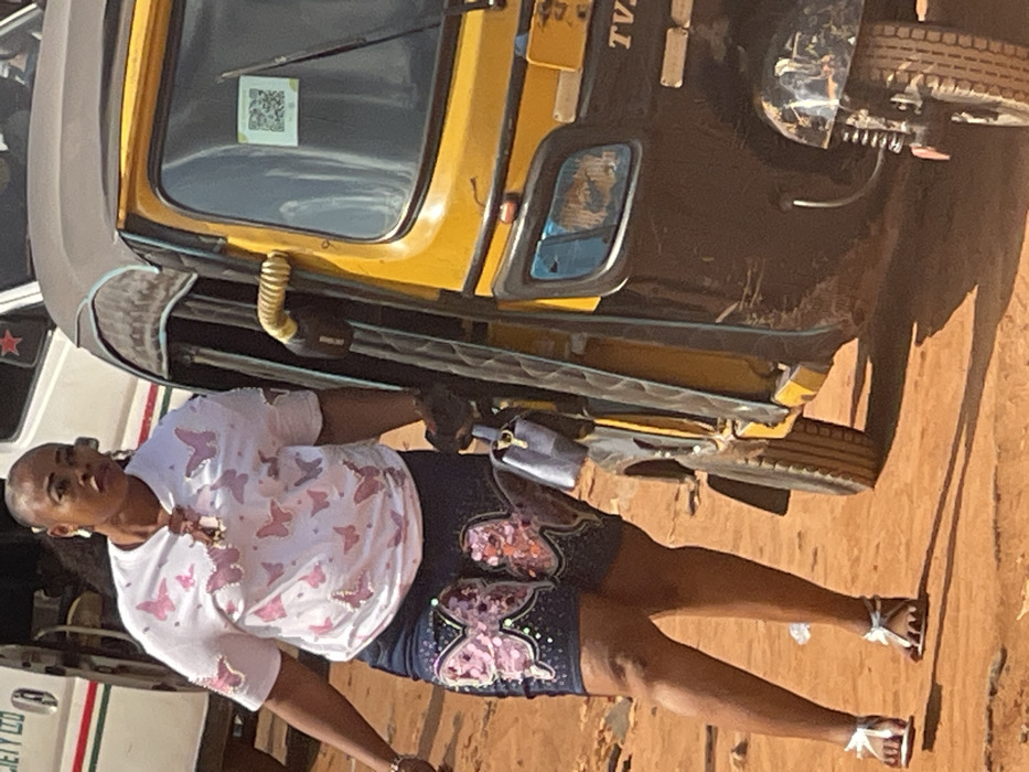 - "An adult female is captured walking on a reddish-brown dirt road in Nkpor, Nigeria, alongside a yellow and black commercial tricycle" by FM-CFMKJ2, licensed under CC BY 4.0