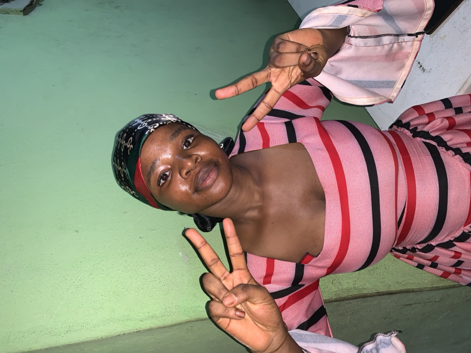 A close-up portrait depicts a young Black female, stated to be located in the city of Aba, Abia State, Nigeria