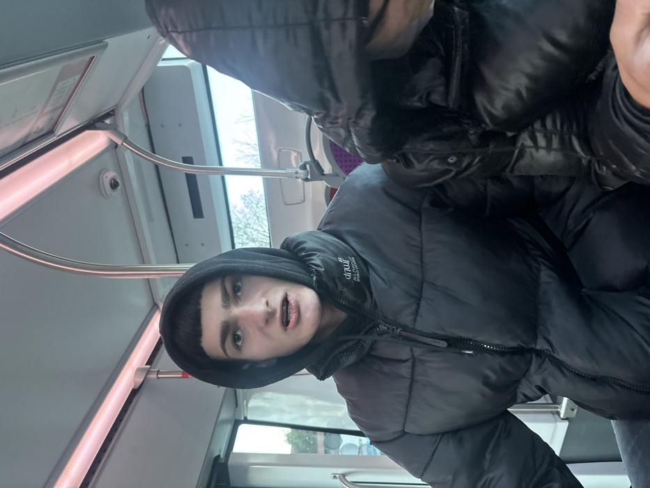 - "The image depicts two individuals inside a public transport vehicle, likely a tram or bus, evidenced by overhead lighting, metal grab rails, and a ceiling-mounted surveillance camera" by FM-DELcs2, licensed under CC BY 4.0