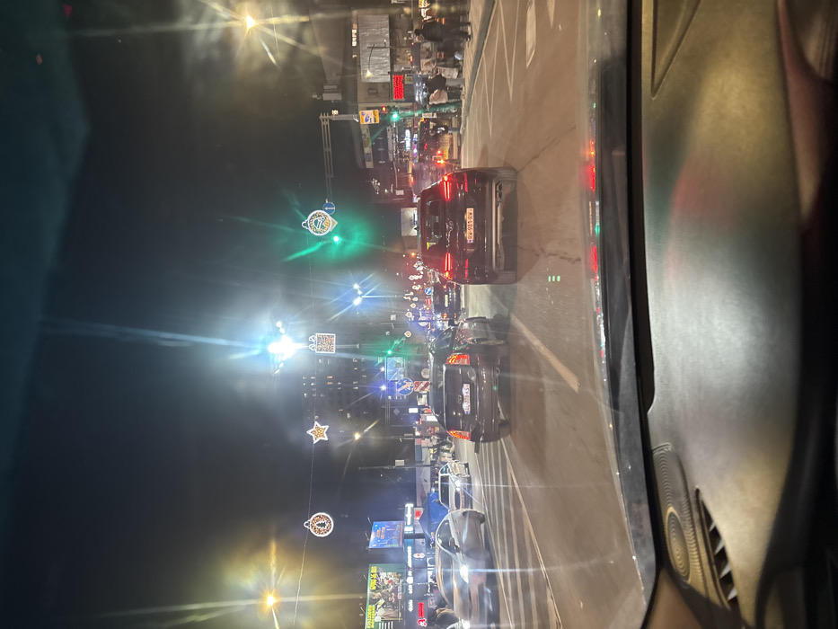 - "The image depicts a nighttime street scene from the interior of a vehicle, looking forward through the windshield onto a major thoroughfare in Tbilisi, Georgia, likely Rustaveli Avenue, given the specific overhead holiday decorations" by FM-CtEAd2, licensed under CC BY 4.0