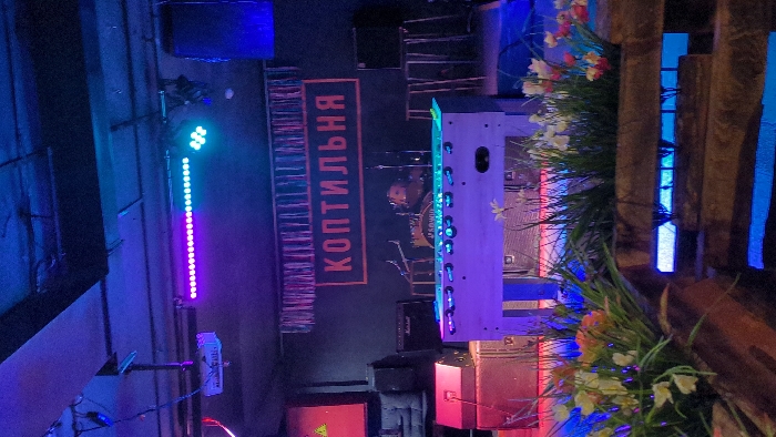 - "The image depicts the interior of a dimly lit bar or music venue, identified as "Koptilnya" (КОПТИЛЬНЯ, meaning Smokehouse) located at Revaliucyjnaja St, 15, Minsk, Belarus" by FM-S45sE3, licensed under CC BY 4.0