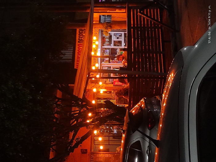 - "A nighttime scene shows a small store with a wooden awning adorned with string lights" by FM-NSjnv2, licensed under CC BY 4.0