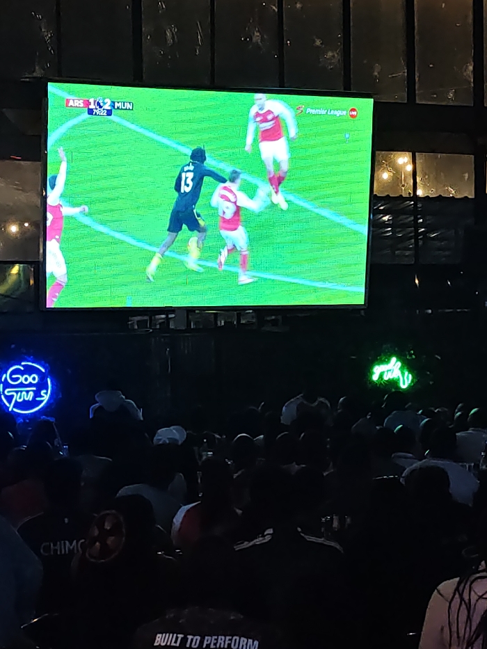 - "A crowd watches a large screen displaying a Premier League soccer match between Arsenal (ARS) and Manchester United (MUN)" by FM-Ys6e53, licensed under CC BY 4.0