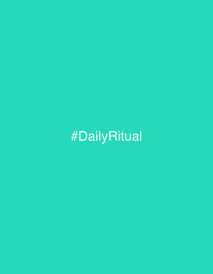 The image displays a uniform teal background. The white text '#DailyRitual' is centrally positioned, specifically centered horizontally and slightly above the vertical midpoint. This digital graphic is located in the city of Oeiras, Portugal. No people, physical subjects, objects beyond the text, actions, or interactions are present in the visual content. The environment is an abstract, two-dimensional digital space.