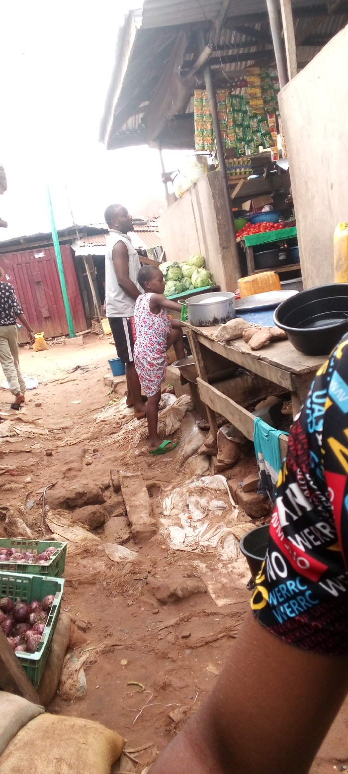 The scene takes place in an open-air market in Okigwe, Nigeria