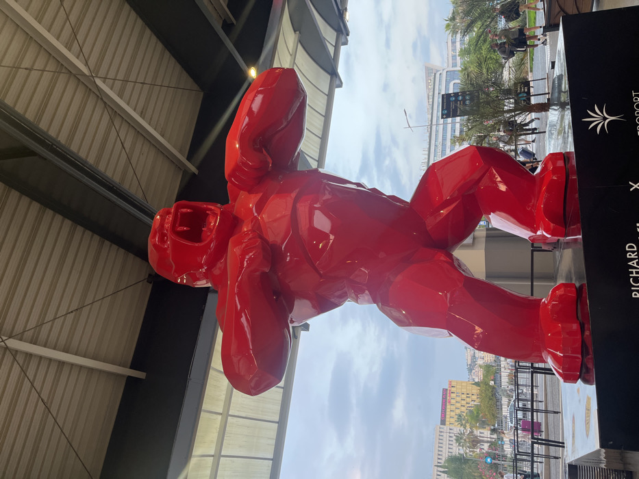 - "A large, glossy red sculpture of a stylized, faceted gorilla stands on a black rectangular pedestal under a metal roof overhang at the Nice Côte d'Azur Airport in Nice, France" by FM-eWTi73, licensed under CC BY 4.0
