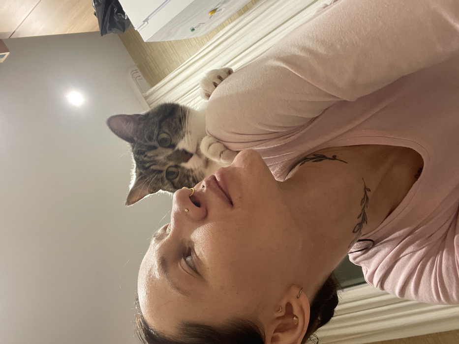 - "An indoor scene in Izhevsk, Russia, depicts a female individual and a domestic cat" by FM-E2aNU2, licensed under CC BY 4.0