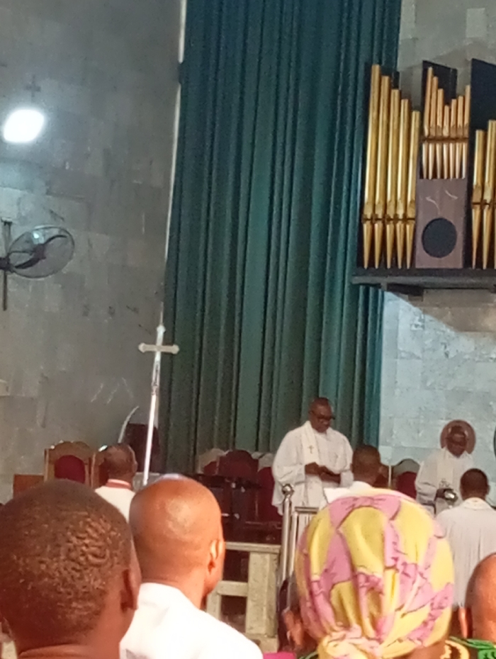 The image captures an indoor scene within a religious building, located in Fegge, Nigeria