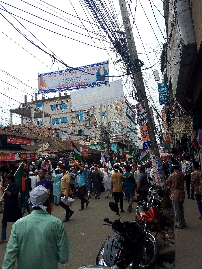 crowded street in Bhola, Bangladesh (latitude: 22