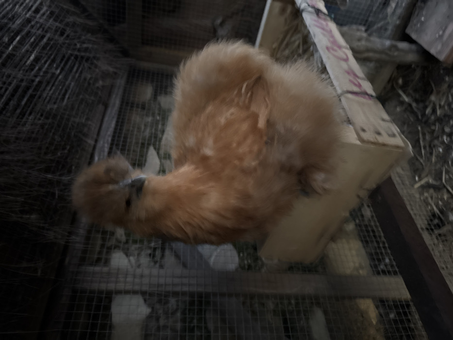 - "A single Silkie chicken, characterized by its fluffy, orange-brown plumage and prominent crest, is positioned within a chicken coop in Cucuron, France" by FM-9Jgur1, licensed under CC BY 4.0