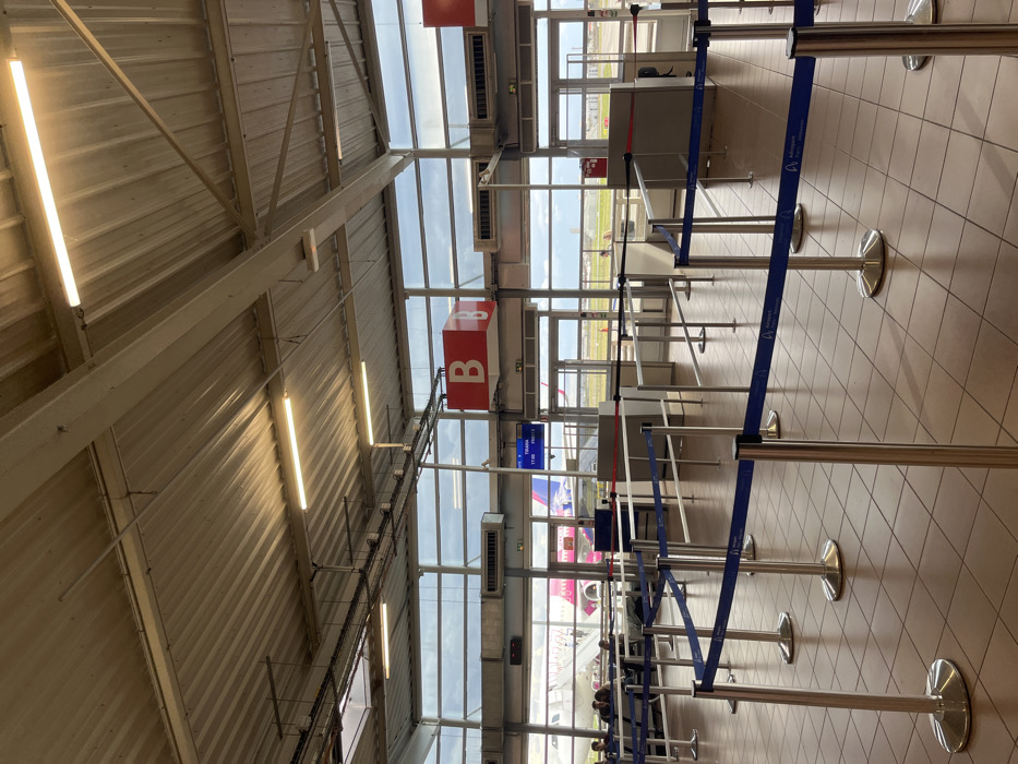 view of an empty airport gate area at the Lille Airport in France (latitude: 49