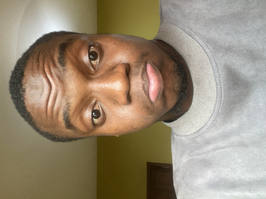 A close-up portrait depicts a single young adult male with dark skin, located indoors in Egan, Nigeria