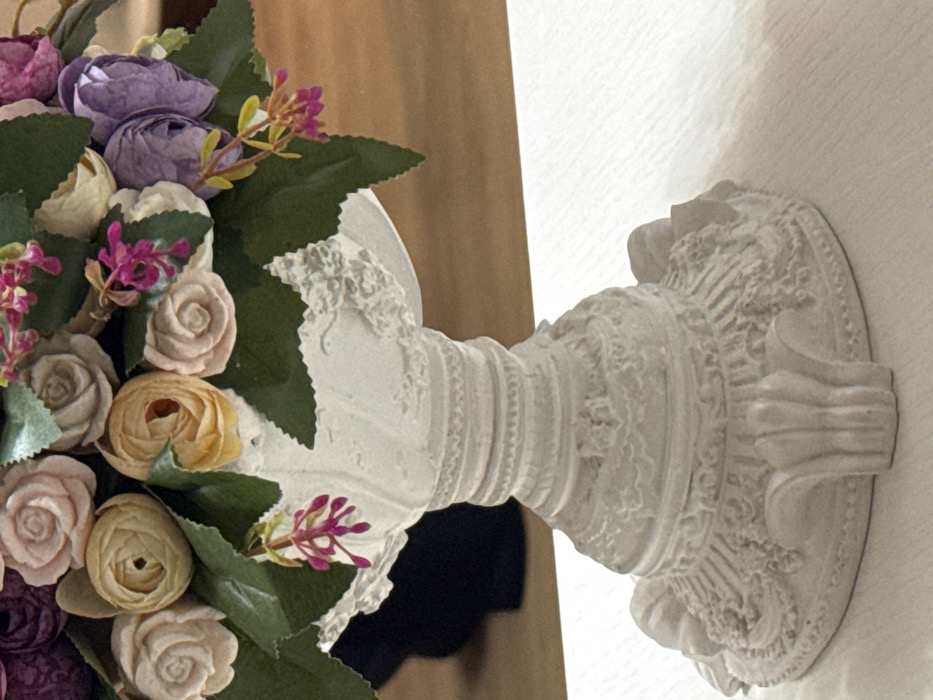 - "The image displays a white, ornate decorative vase holding a bouquet of artificial flowers" by FM-fYcxL2, licensed under CC BY 4.0