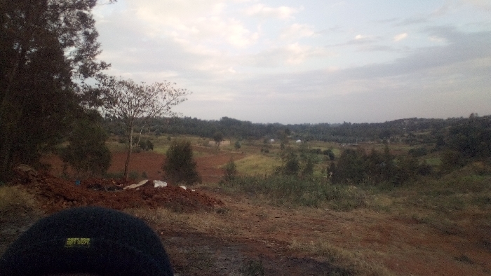 The image displays an expansive, rural landscape in Ndeiya, Kenya, under an overcast sky with diffused light