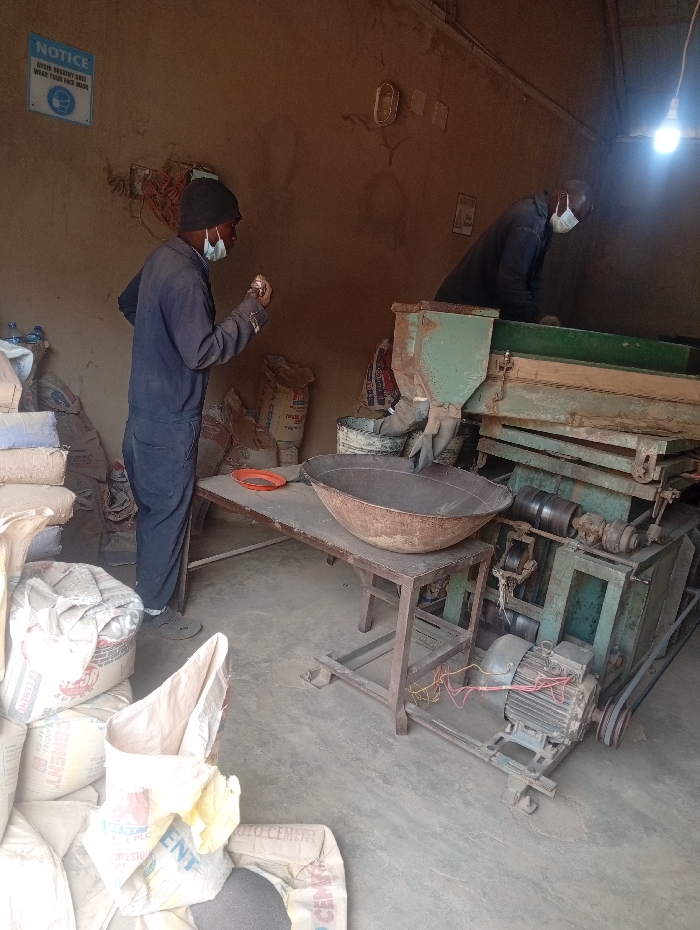 This image displays an indoor industrial or agricultural processing facility located in Jos, Nigeria