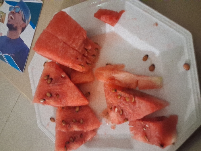 - "A white octagonal plate holds several slices of watermelon" by FM-IiHJp1, licensed under CC BY 4.0