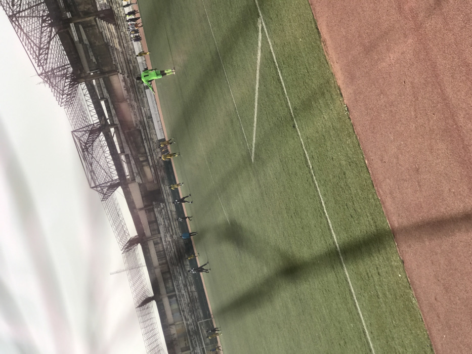 An aerial, diagonal shot captures a football match or practice session underway at New Stadium, Nigeria