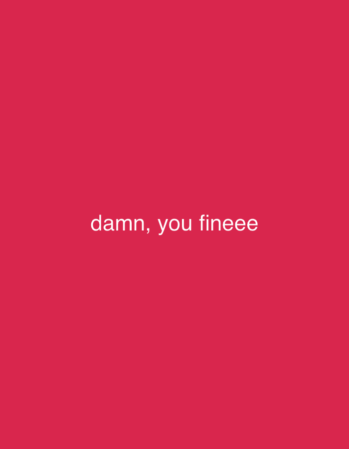 The image, contextualized as being from Iranla, Nigeria, displays a uniform crimson-red background. Centered on this background is white sans-serif text, which reads: "damn, you fineee". No individuals, physical objects, or discernible environmental features are depicted within the visual frame. There are no observable actions or interactions.