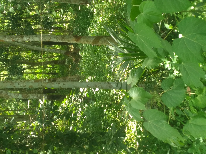 This image captures a dense, verdant forest environment in Blang Pohroh, Indonesia, under natural daylight