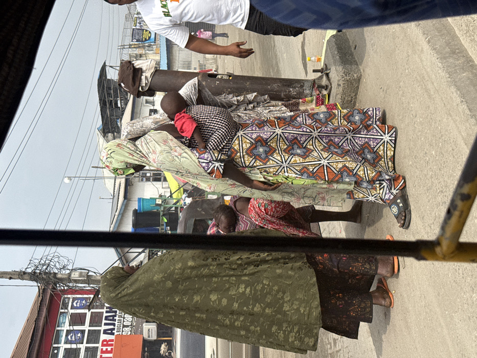 The image depicts an urban street scene in Ajah, Lagos, Nigeria, under clear daylight