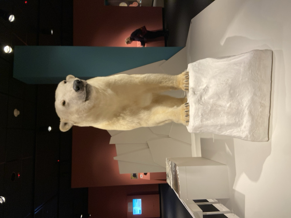 - "A taxidermied polar bear stands on a white platform shaped like a mound of snow, in a museum setting" by FM-6Rqrz2, licensed under CC BY 4.0