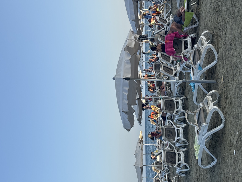 - "The image depicts a busy daytime beach scene in Larnaca, Cyprus, under a clear, light blue sky with a calm blue sea visible in the background" by FM-mfRp53, licensed under CC BY 4.0