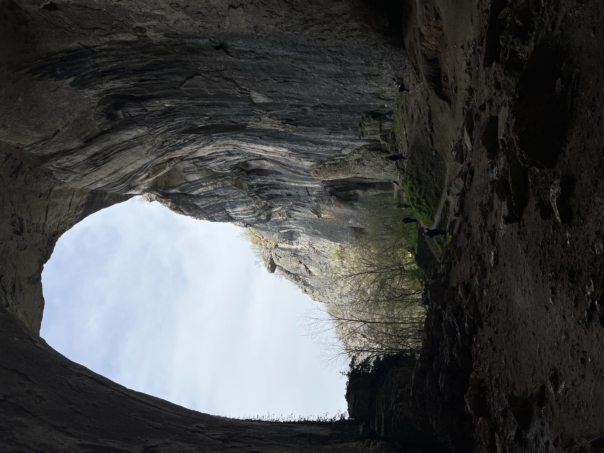 - "The image depicts a view from inside Devetashka Cave in Karlukovo, Bulgaria, looking upwards through a large opening" by FM-pCDYj1, licensed under CC BY 4.0