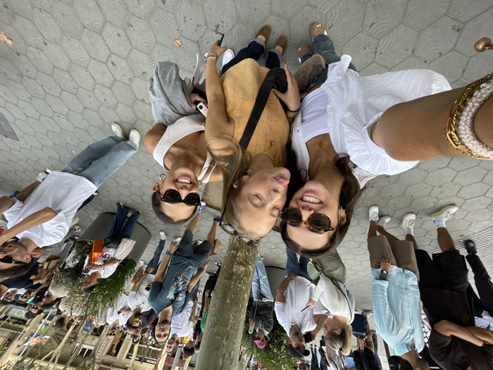 - "The image displays three young women in the foreground taking a selfie on a busy pedestrian street in Barcelona, Spain" by FM-kBJNo2, licensed under CC BY 4.0