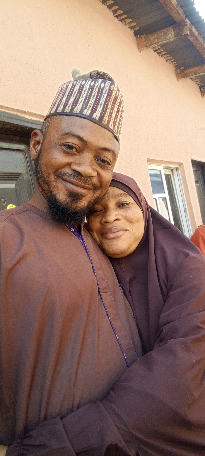 A close-up image shows two adults, a male and a female, posing together in Gwagwarwa, Nigeria