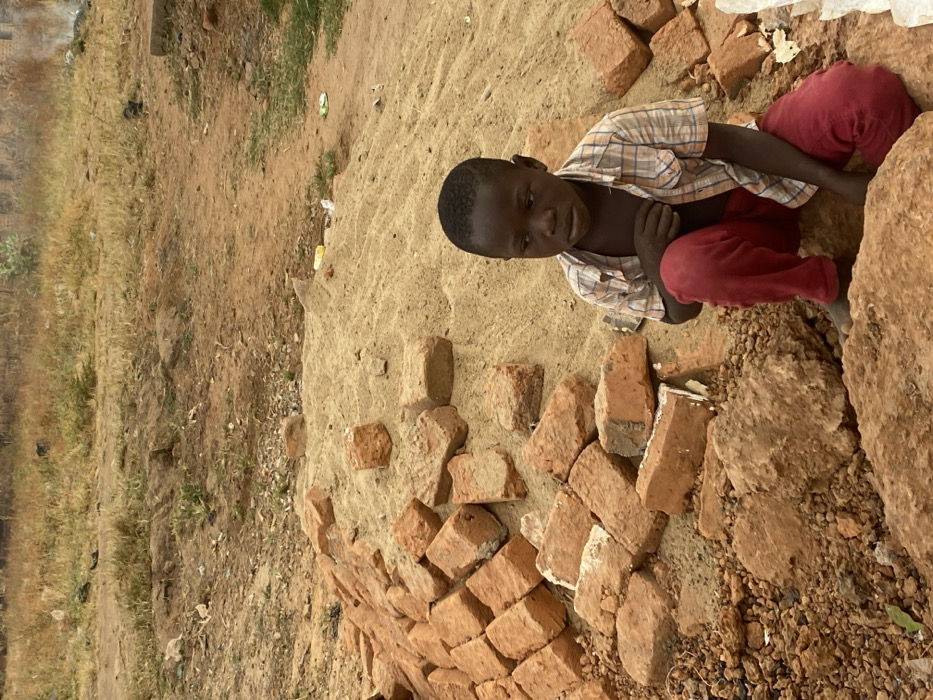 - "A child sits on a mound of sand surrounded by red bricks and large rocks" by FM-h6TnM2, licensed under CC BY 4.0