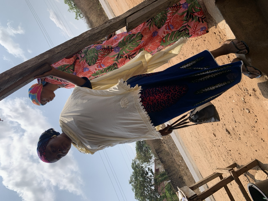 The image captures two women standing outdoors in Kabba, Nigeria, under a bright, partly cloudy sky
