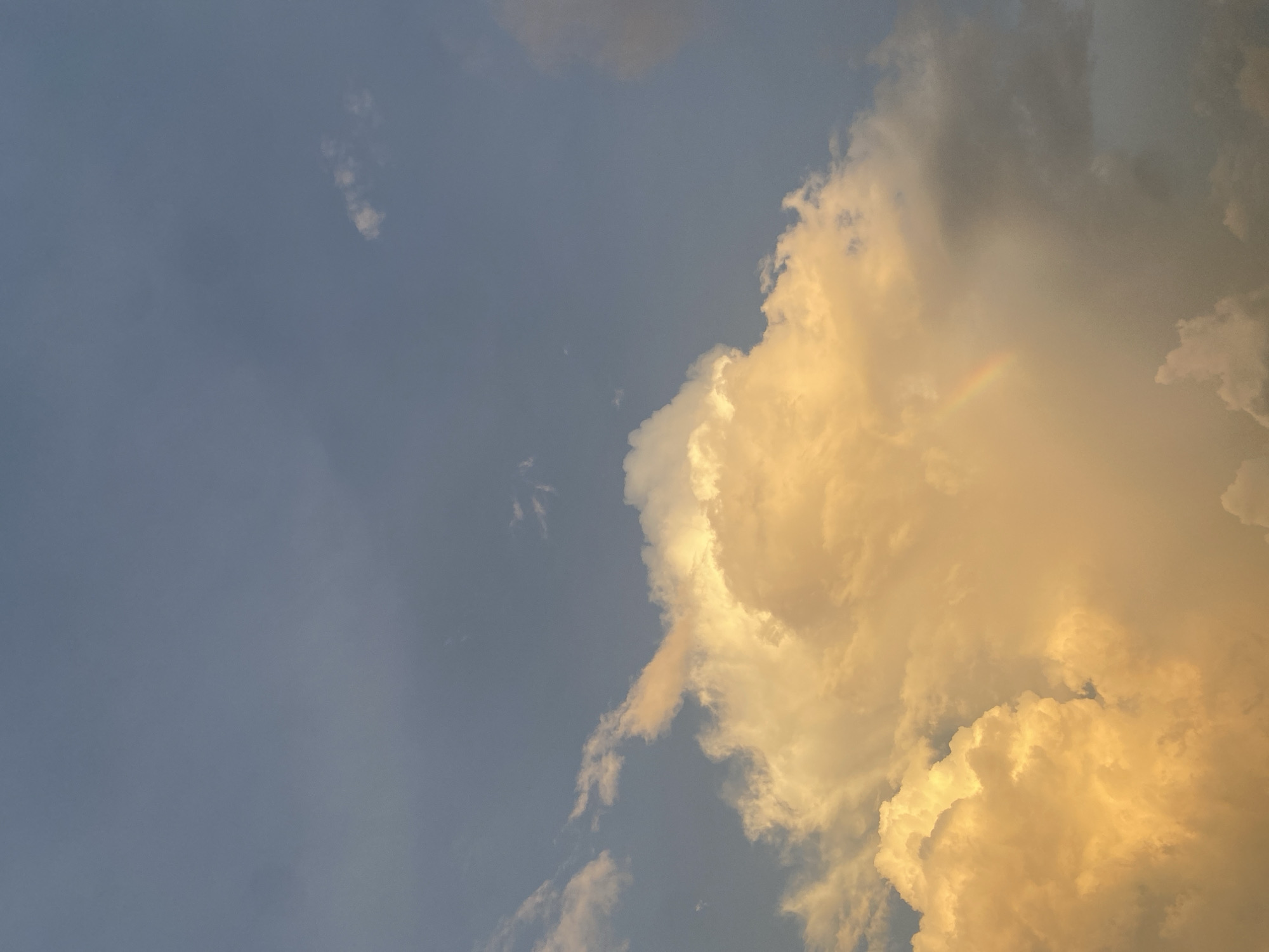 sky in Tambon Mai Khao, Thailand, divided between a gray-blue section on the left and a large, golden-yellow cloud formation on the right. A faint, incomplete rainbow is visible within the cloud on the right. The rest of the scene is composed of varying cloud formations, with no people or objects visible on the ground.