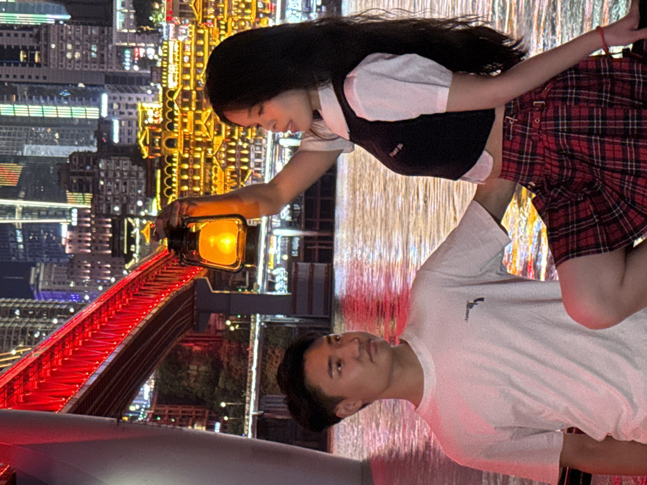 - "This image depicts two East Asian individuals, a male and a female, situated outdoors at night along a waterfront in 江北城街道 (Jiāngběichéng Jiēdào), Chongqing, China" by FM-LQg7b2, licensed under CC BY 4.0