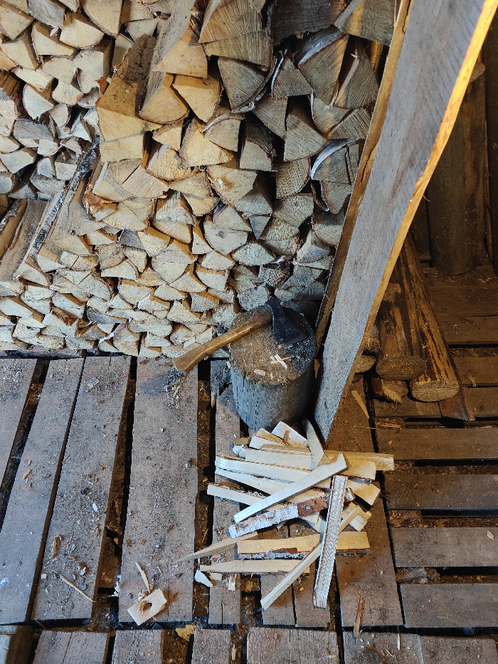 - "Within a covered structure in Nizhnyaya Gar', Russia, likely a woodshed, a scene of wood processing is depicted" by FM-LxGEp1, licensed under CC BY 4.0