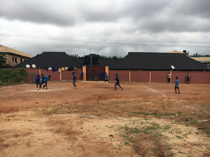 - "The image displays an outdoor football (soccer) match taking place on a dirt field in Nkpor, Nigeria" by FM-Jg50t1, licensed under CC BY 4.0