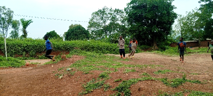 - "The image depicts an outdoor scene in Kundu 1, Democratic Republic of the Congo, featuring five children on an uneven reddish-brown dirt clearing with scattered patches of green vegetation" by FM-Di9s03, licensed under CC BY 4.0