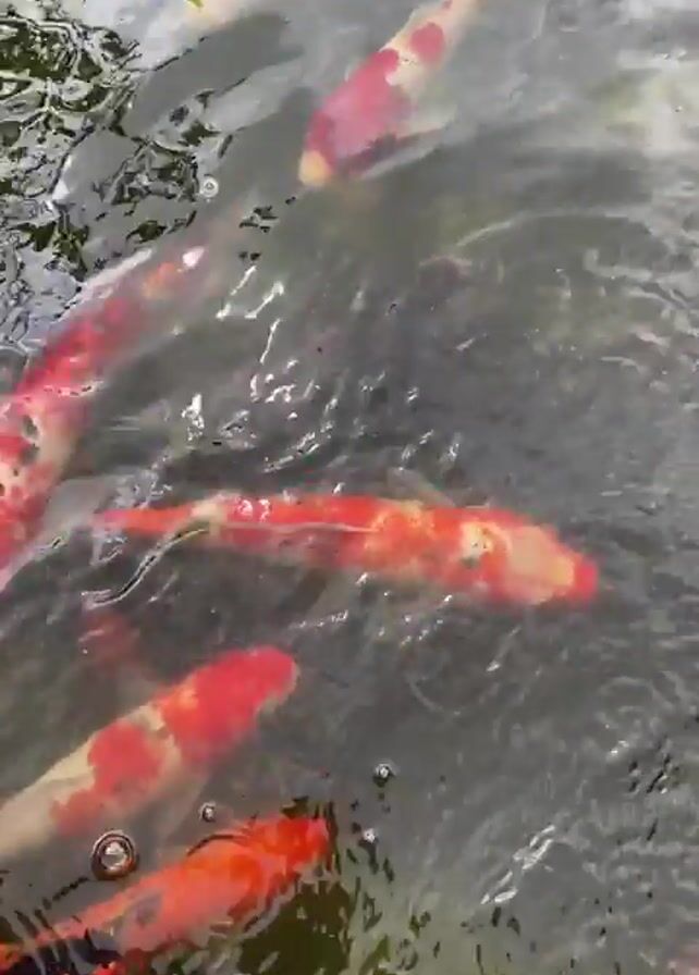 pond with many koi fish swimming