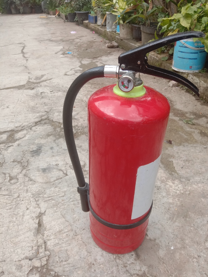 - "A red cylindrical fire extinguisher stands upright on a weathered, cracked concrete surface in Ciherang, Indonesia" by FM-TaKCH3, licensed under CC BY 4.0