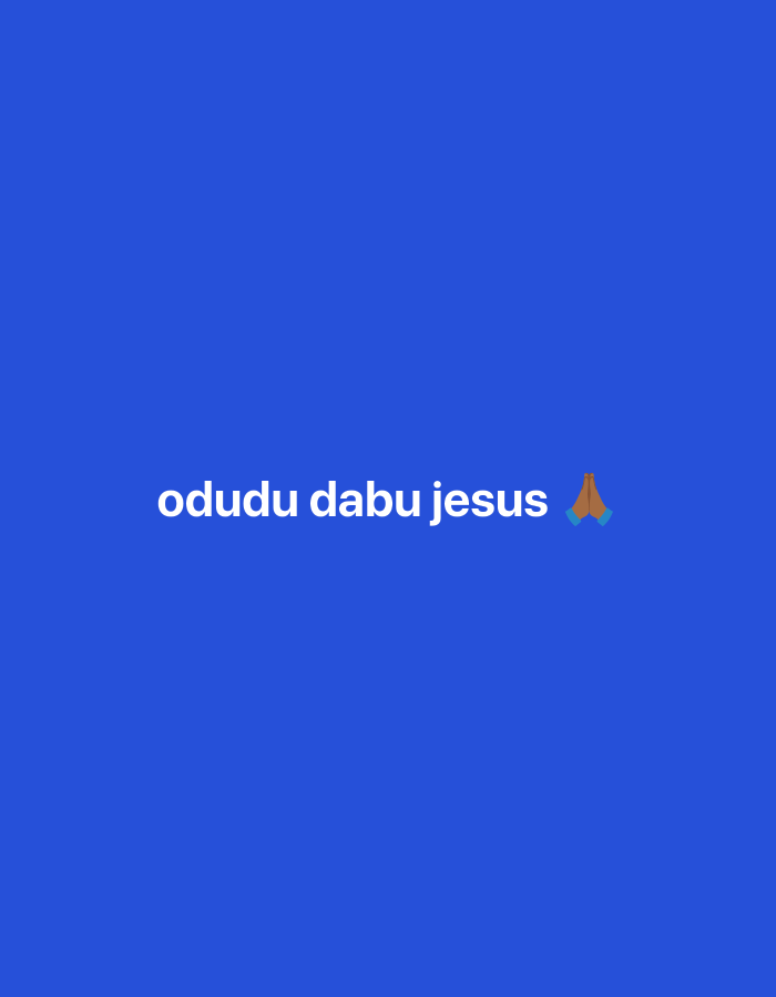 A blue background features the text "odudu dabu jesus" in white. To the right of the text is an emoji depicting two hands pressed together in prayer. The text is centered and positioned in the lower third of the image.