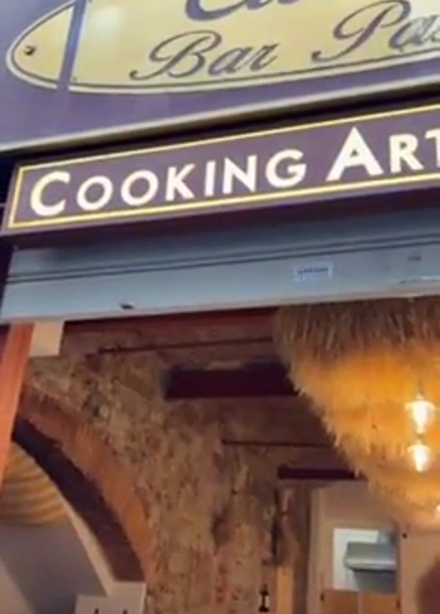 The camera shows a close-up of a restaurant called "Cooking Art Brunch