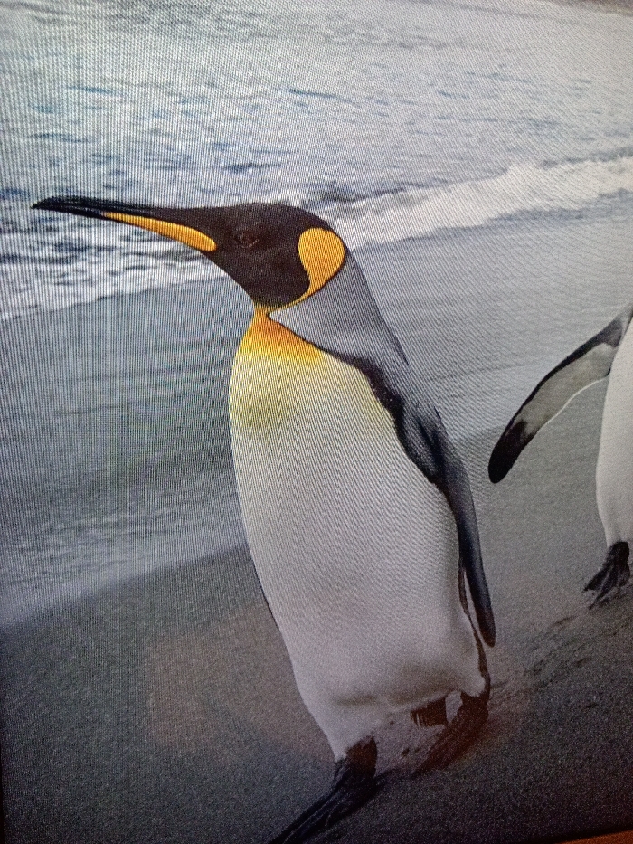 - "The image depicts two King Penguins on a sandy shoreline with the ocean in the background, presented as being located in Olambe, Nigeria" by FM-FBtc13, licensed under CC BY 4.0