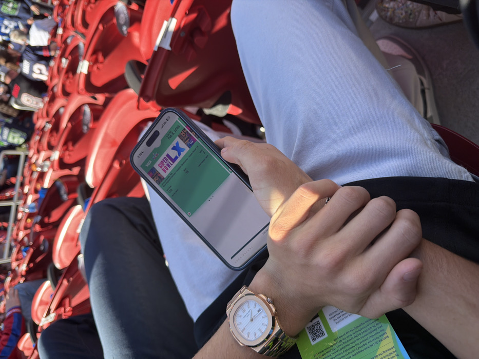 - "person holding a smartphone with a Super Bowl LX ticket displayed on the screen" by FM-TRGSw1, licensed under CC BY 4.0
