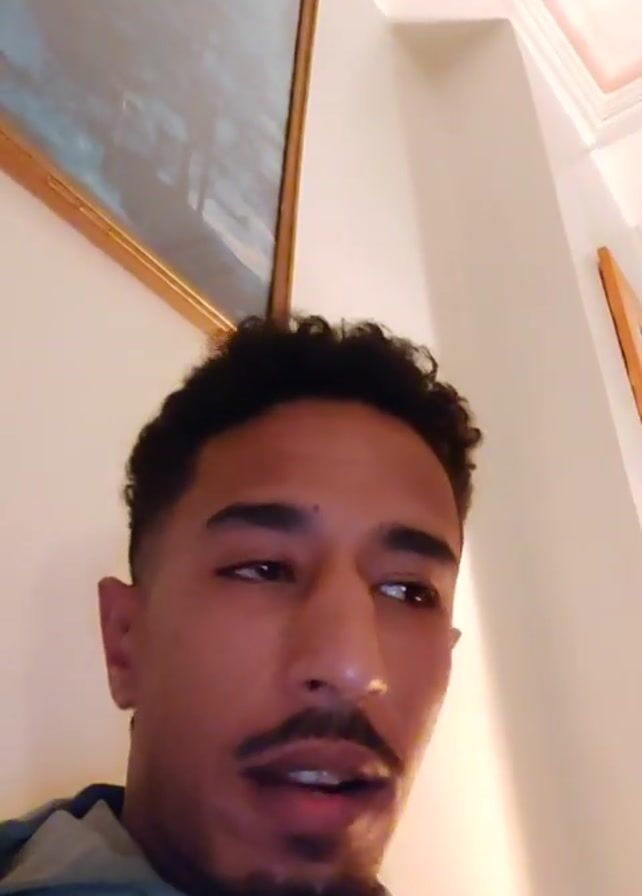 A close-up shot shows a man with curly dark hair, a mustache, and a goatee looking down and speaking. He is wearing a gray hooded sweatshirt. Behind him, a light-colored wall is visible. On the wall, there are two framed pictures. The lighting in the room appears to be soft and warm.
