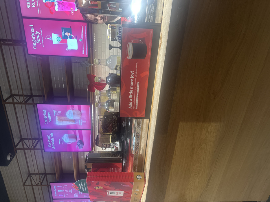 interior service counter of a Starbucks coffee shop in Saint-Germain-en-Laye, France, during the winter holiday season