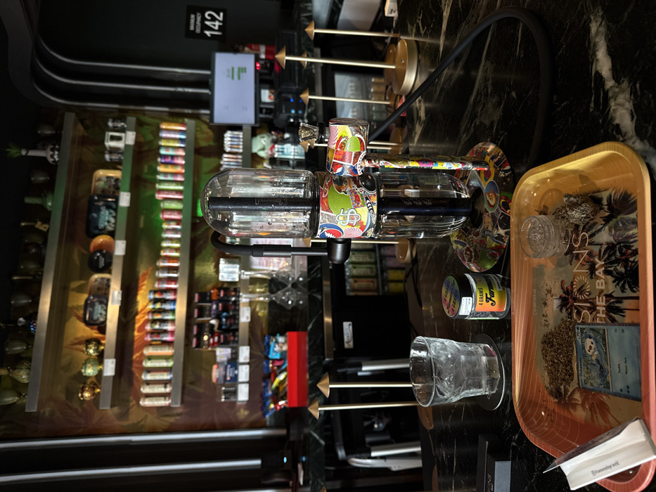 - "An indoor scene in National City, United States of America, depicts a commercial establishment, likely a cannabis lounge or dispensary, focusing on a dark marble-patterned countertop" by FM-Lec863, licensed under CC BY 4.0