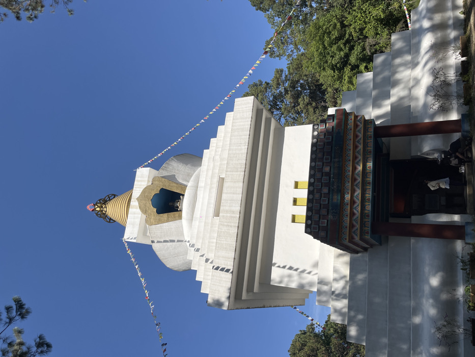 - "A white stupa with a golden spire stands against a bright blue sky" by FM-3PMzr1, licensed under CC BY 4.0