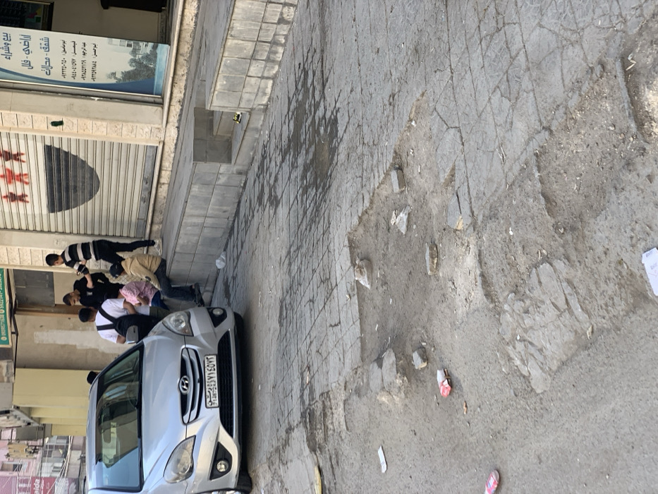 This image depicts an urban street scene in Ma'raba, Syria, characterized by a mix of functional and deteriorated infrastructure