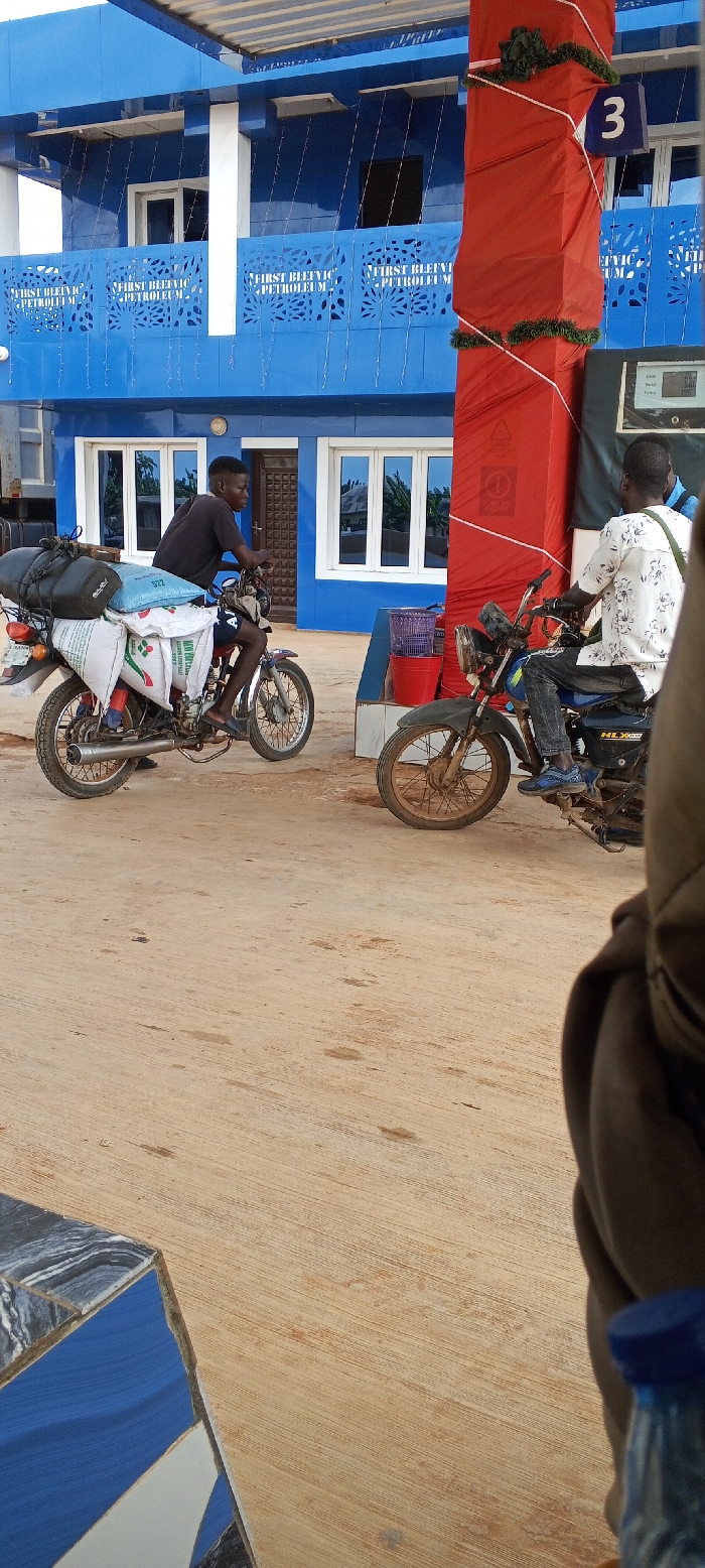 - "The scene depicts the outdoor forecourt of a petroleum station identified as "FIRST BLEEVIC PETROLEUM" in Agbara, Nigeria" by FM-6yfeV2, licensed under CC BY 4.0