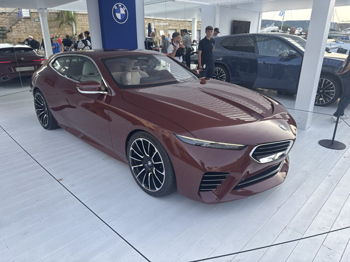 - "The image displays a maroon BMW concept car showcased at an outdoor exhibition stand located within the port area of Saint-Tropez, France" by FM-CIOZn2, licensed under CC BY 4.0