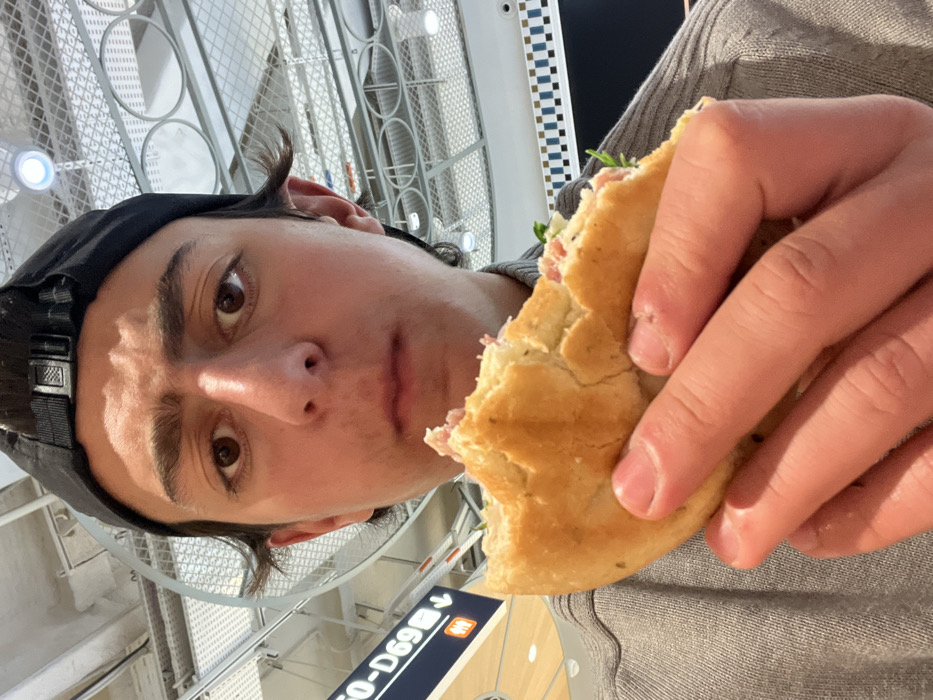 - "A young male, approximately mid-to-late teens, is depicted in a close-up, front-facing view, holding and eating a sandwich" by FM-8oYor1, licensed under CC BY 4.0